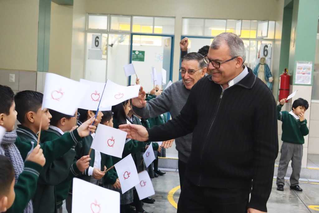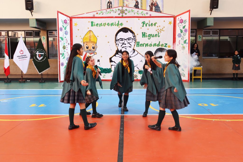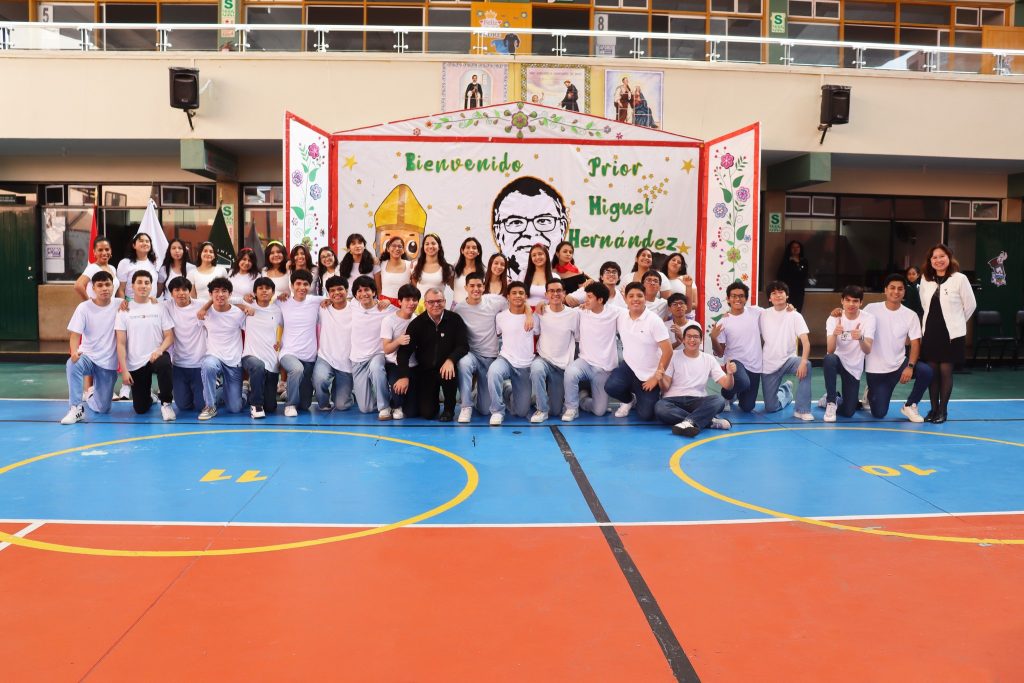 Desde su llegada, el Prior General fue acogido con entusiasmo por los estudiantes de los primeros grados, quienes le ofrecieron una cálida bienvenida. Posteriormente, recorrió los diferentes espacios del colegio, conociendo de cerca el trabajo de los docentes, estudiantes, personal administrativo y colaboradores, quienes día a día hacen posible la misión educativa agustiniana.