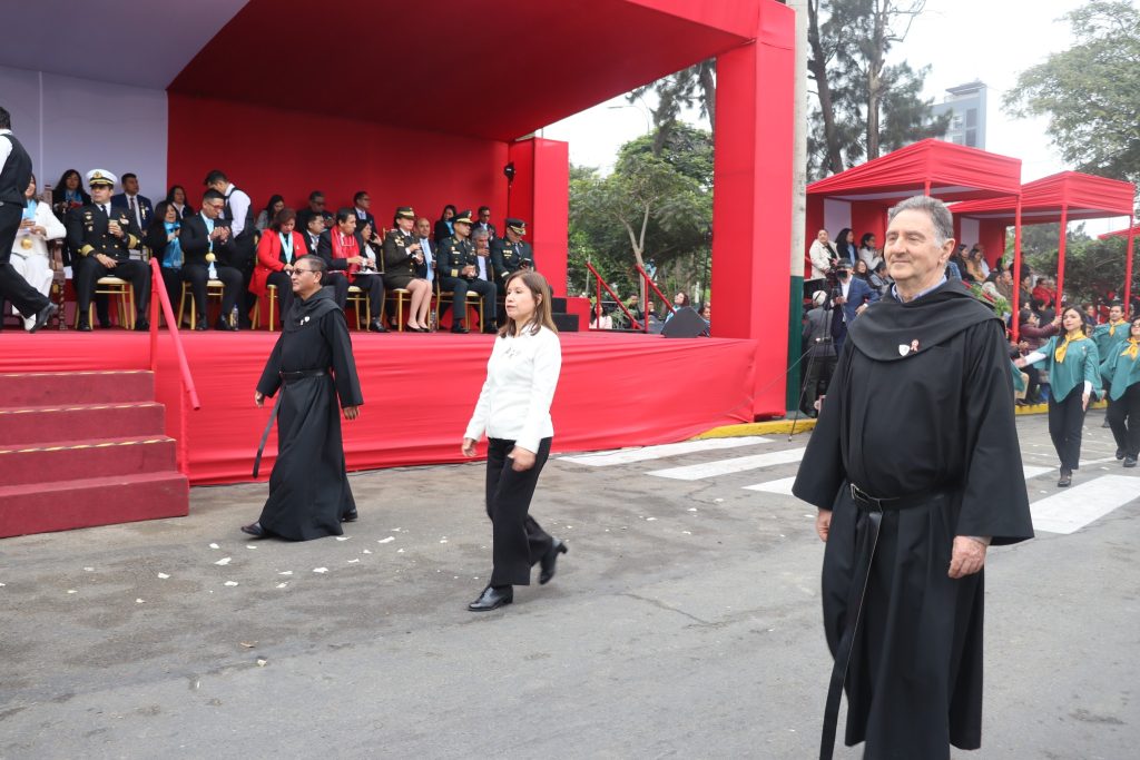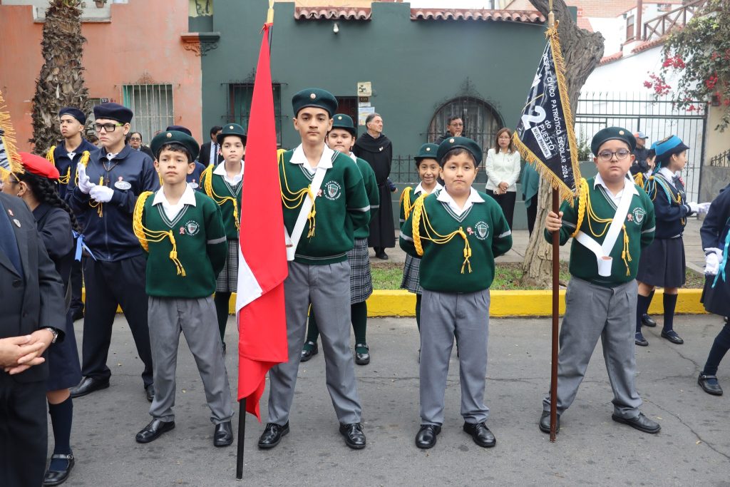 Nuestros estudiantes de primaria y secundaria, representados por sus escoltas, abanderados y la Promoción 2025 «Cresciutti Insieme», junto a sus docentes, directivos y frailes agustino-recoletos, desfilaron con honor y firmeza, portando con orgullo el escudo de nuestra institución. Nos llena de alegría compartir que, gracias a su destacada participación, nuestro nivel secundaria obtuvo el 3er lugar en esta importante ceremonia.