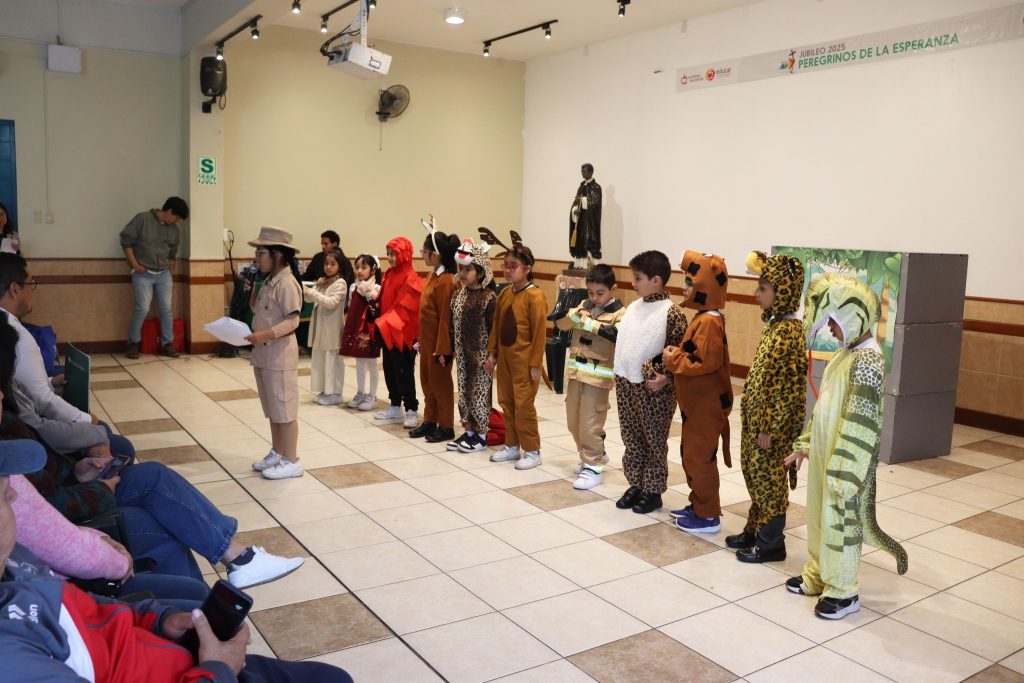 Iniciamos agradeciendo a Dios junto a Fray Jorge Luis Chiu, OAR. Luego, los pequeños de 1er y 2do grado fueron los encargados de dar apertura a nuestra feria con una obra teatral que reconoció la importancia del cuidado de la fauna y flora peruana.